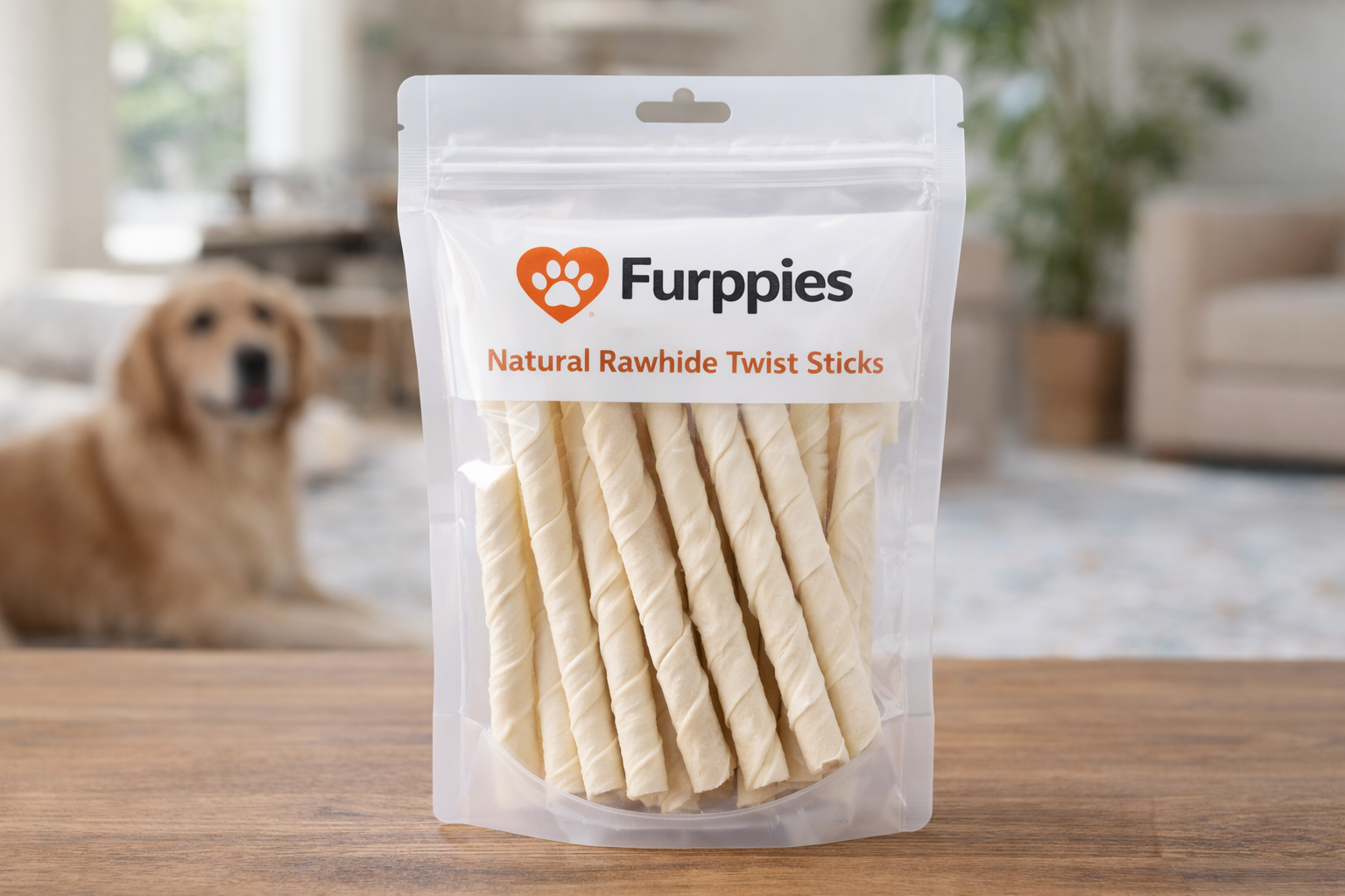 Furppies Natural Rawhide Twist Sticks – Long-Lasting Dental Chew for Small & Medium Dogs